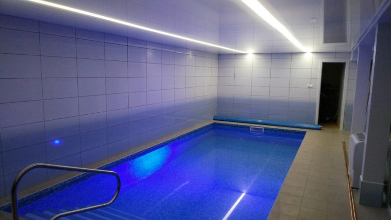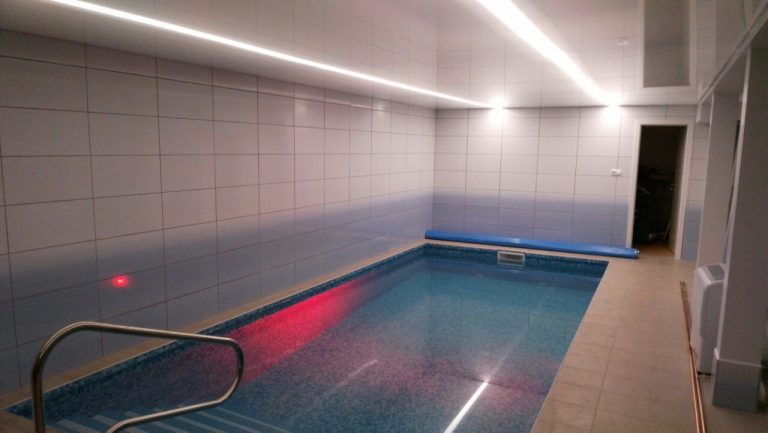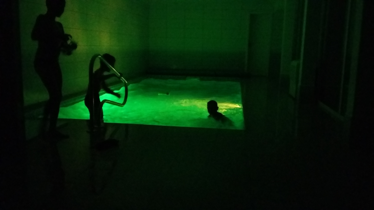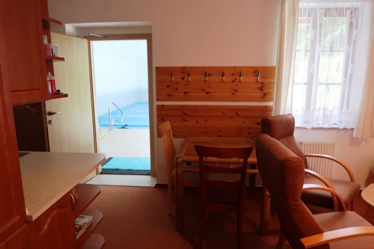 Odpočinková místnost se saunou, vstup do bazénu